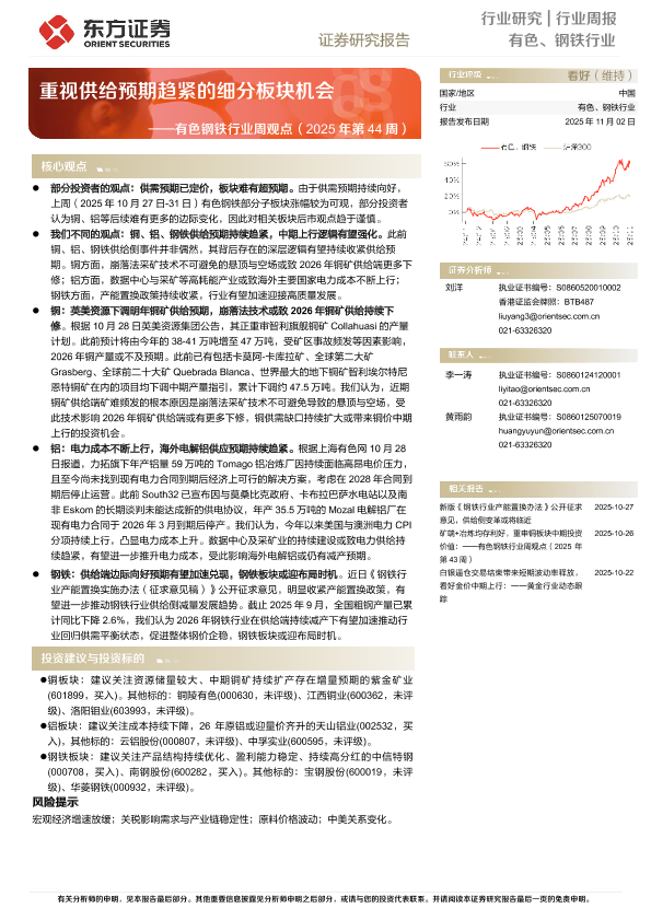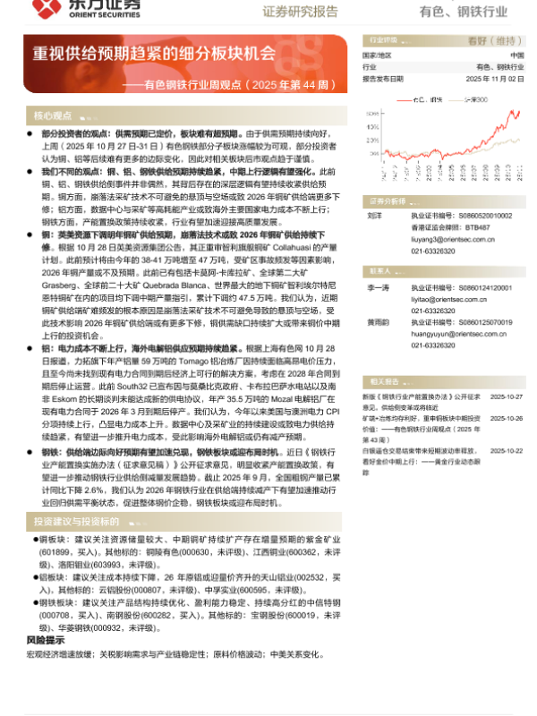 【东方证券】【202511】有色钢铁行业周报 ——重视供给预期趋紧的细分板块机会-23页