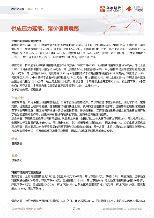 【华泰期货】【202511】农产品月报 | 供应压力延续,猪价偏弱震荡-10页