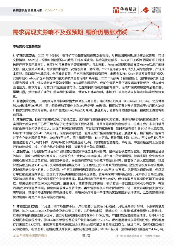 【华泰期货】【202511】新能源及有色金属月报_需求弱现实影响不及强预期_铜价仍易涨难跌-11页