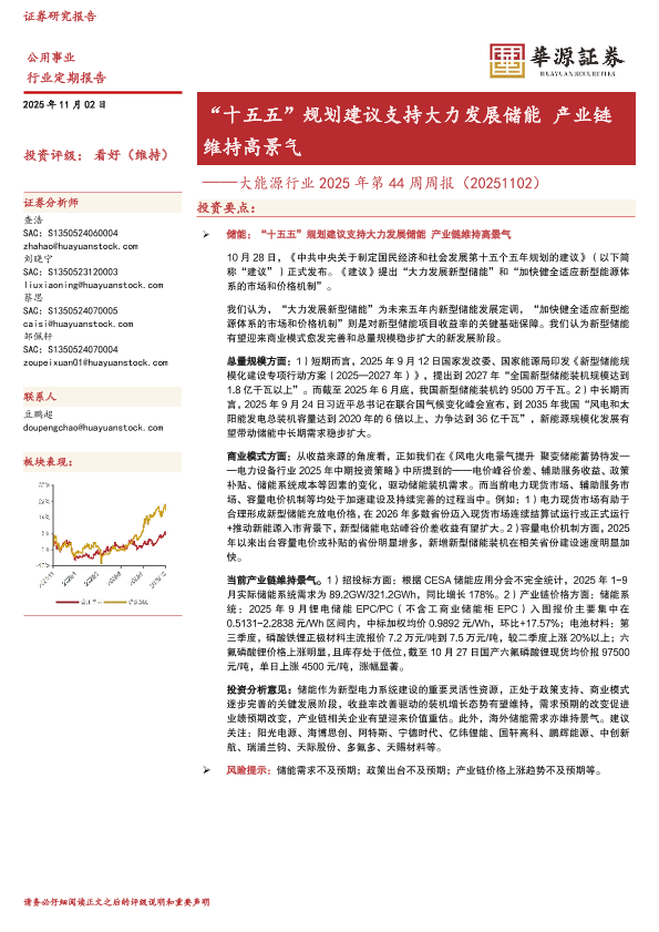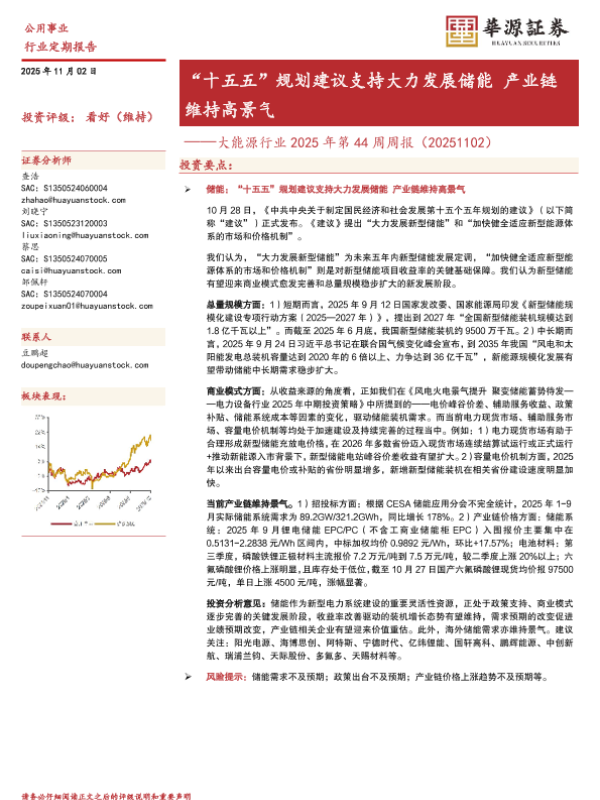 【华源证券】【202511】“十五五”规划建议支持大力发展储能产业链 维持高景气——大能源行业 2025年第 44周周报(20251102)-10页
