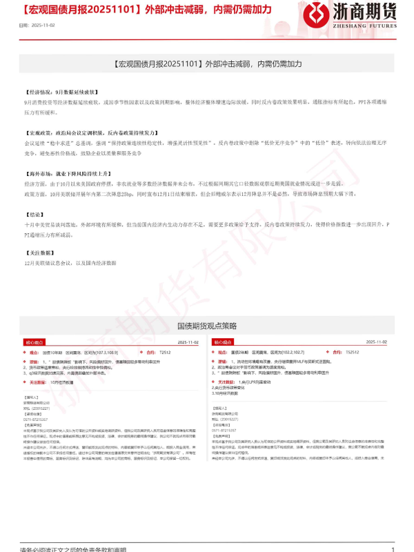 【浙商期货】【202511】宏观国债月报 20251101】外部冲击减弱 ,内需仍需加力-8页