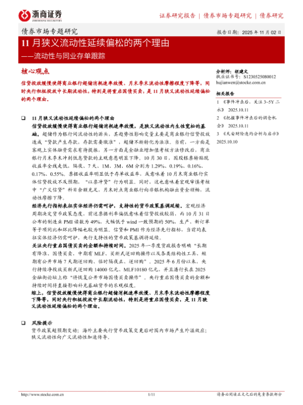 【浙商证券】【202511】11月狭义流动性延续偏松的两个理由——流动性与同业存单跟踪-11页