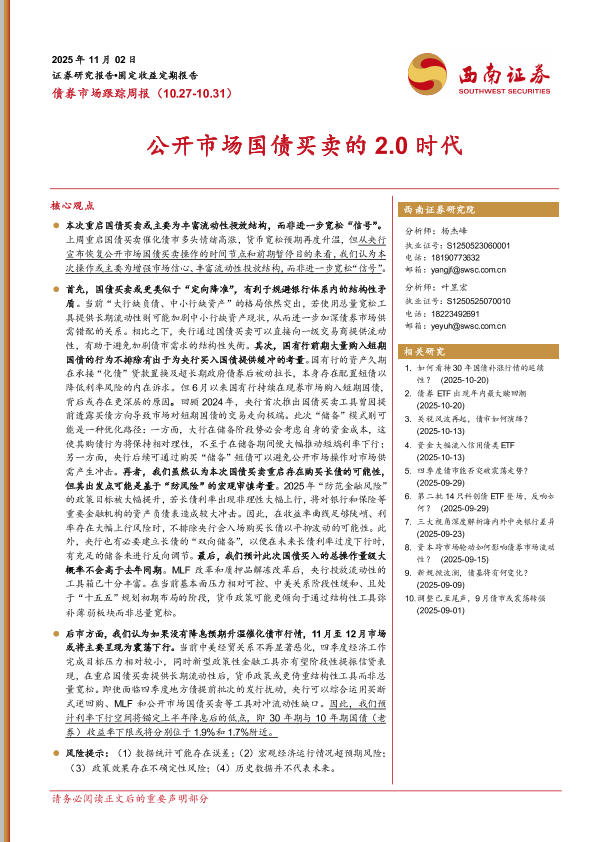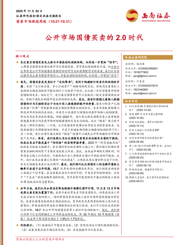 【西南证券】【202511】债券市场跟踪周报(10.27-10.31)公开市场国债买卖的2.0时代-20页