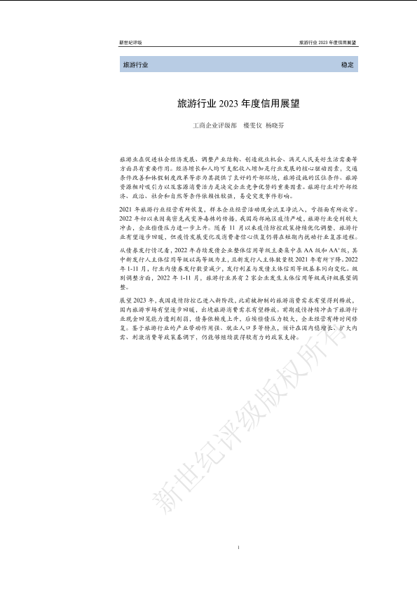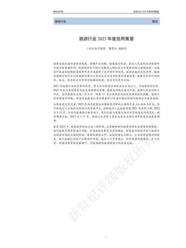 【新世纪评级】【20230101】旅游行业2023年度信用展望-25页