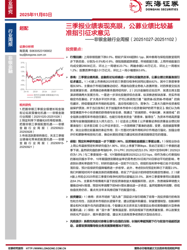 【东海证券】【202511】三季报业绩表现亮眼,公募业绩比较基准指引征求意见-9页