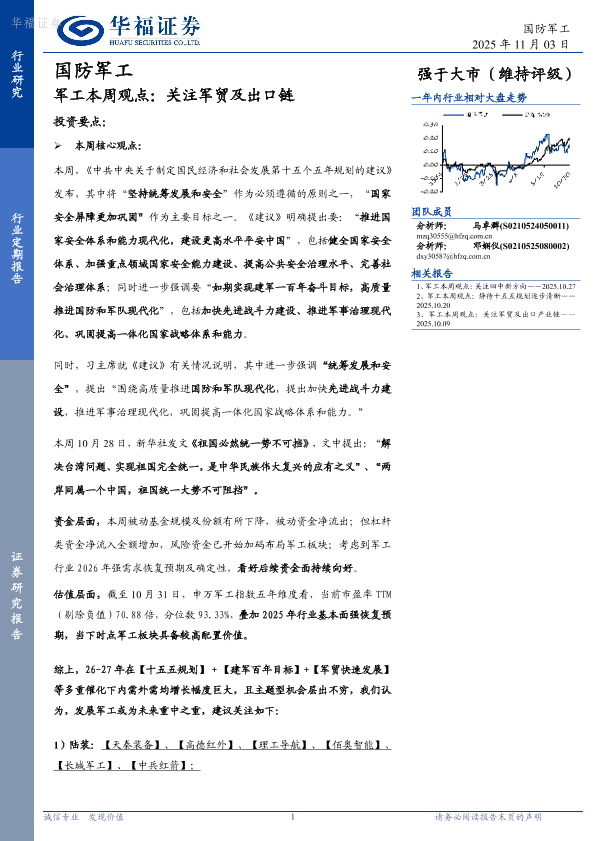 【华福证券】【202511】军工本周观点:关注军贸及出口链-15页