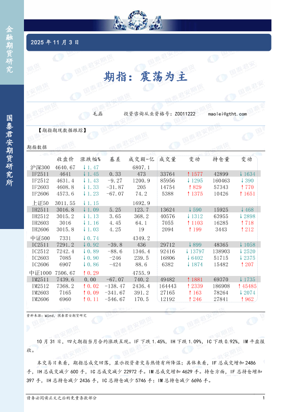 【国泰君安期货】【202511】期指:震荡为主-4页