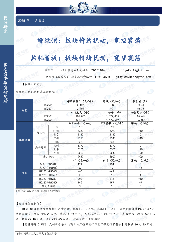 【国泰君安期货】【202511】螺纹钢_板块情绪扰动_宽幅震荡_热轧卷板_板块情绪扰动_宽幅震荡-3页