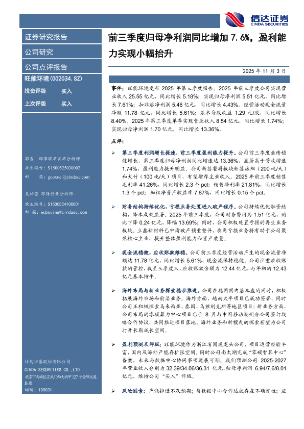 固废处理 现金流分析 海外拓展 盈利预测 环保行业