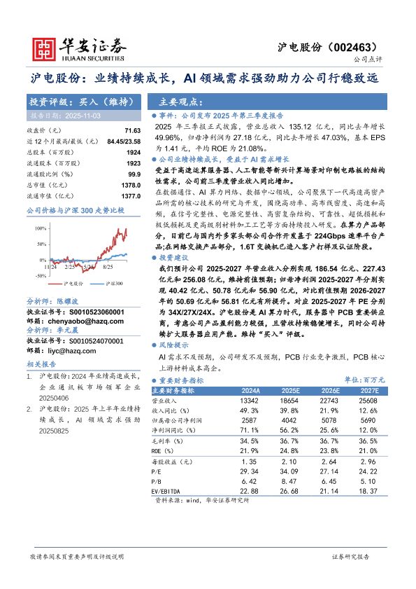 【华安证券】【202511】沪电股份:业绩持续成长,AI领域需求强劲助力公司行稳致远-3页