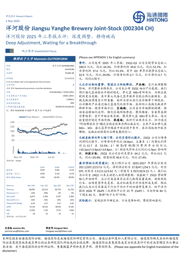 【海通国际】【202511】洋河股份2025年三季报点评:深度调整,静待破局-12页