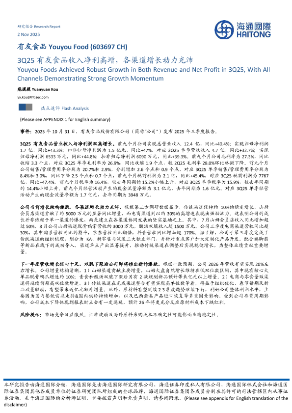 【海通国际】【202511】3Q25有友食品收入净利高增,各渠道增长动力充沛-9页