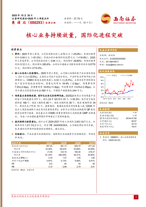 【西南证券】【202510】奥浦迈(688293):核心业务持续放量,国际化进程突破-5页