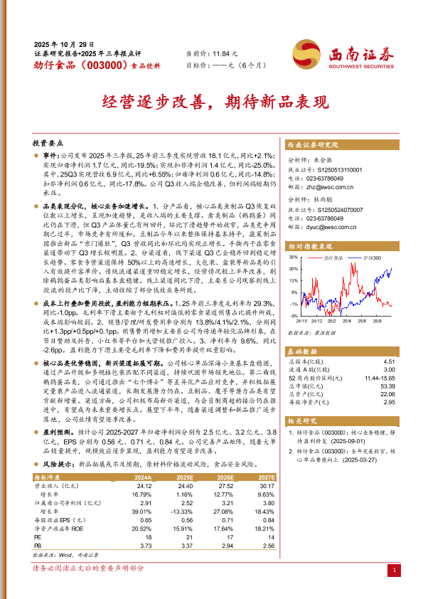 【西南证券】【202510】劲仔食品(003000):经营逐步改善,期待新品表现-7页
