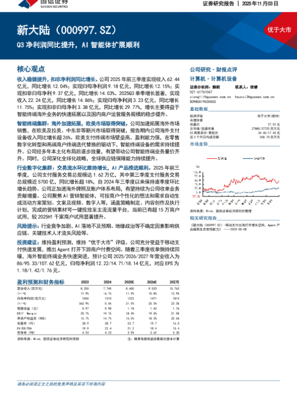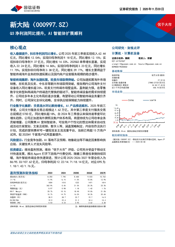 【国信证券】【202511】Q3净利润同比提升,AI智能体扩展顺利-5页
