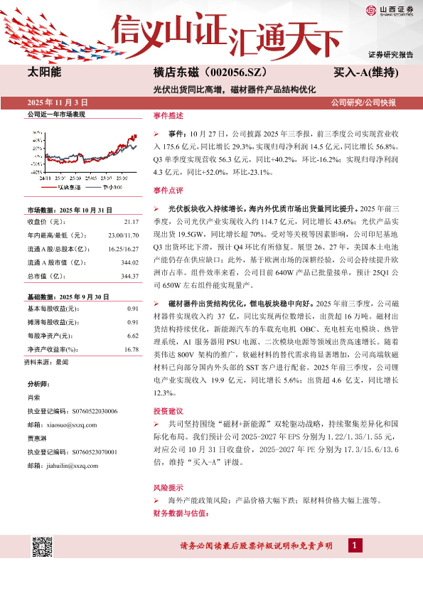 【山西证券】【202511】光伏出货同比高增,磁材器件产品结构优化-5页