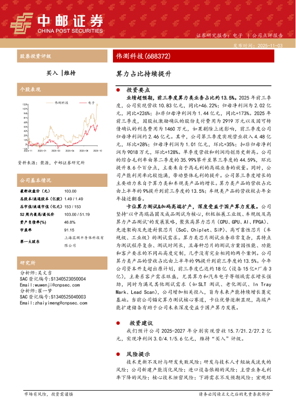 半导体 业绩增长 车规级芯片 算力测试 国产算力