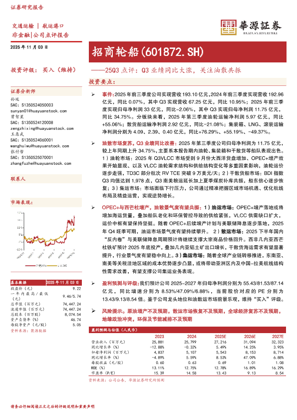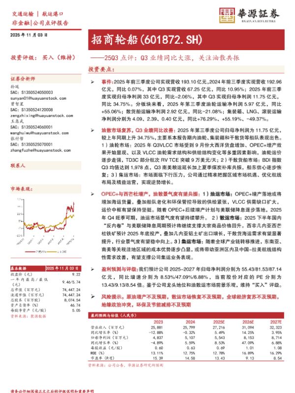 【华源证券】【202511】25Q3点评:Q3业绩同比大涨,关注油散共振-3页