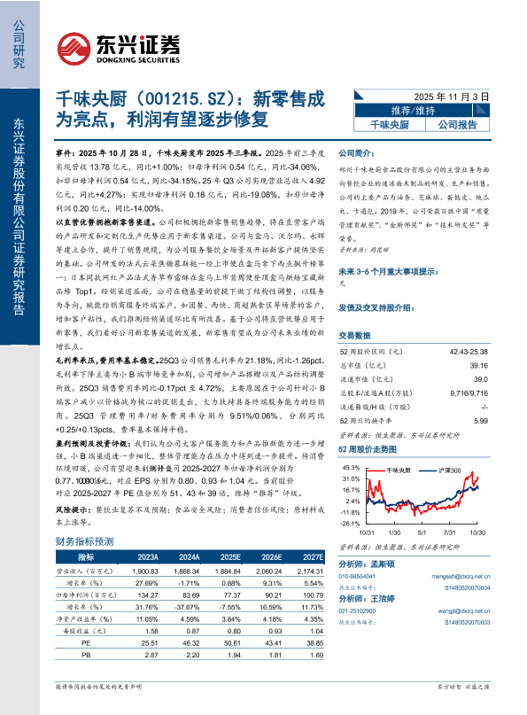 【东兴证券】【202511】千味央厨(001215.SZ):新零售成为亮点,利润有望逐步修复-6页