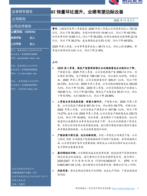 投资评级 煤炭 行业研究 公司点评 业绩分析