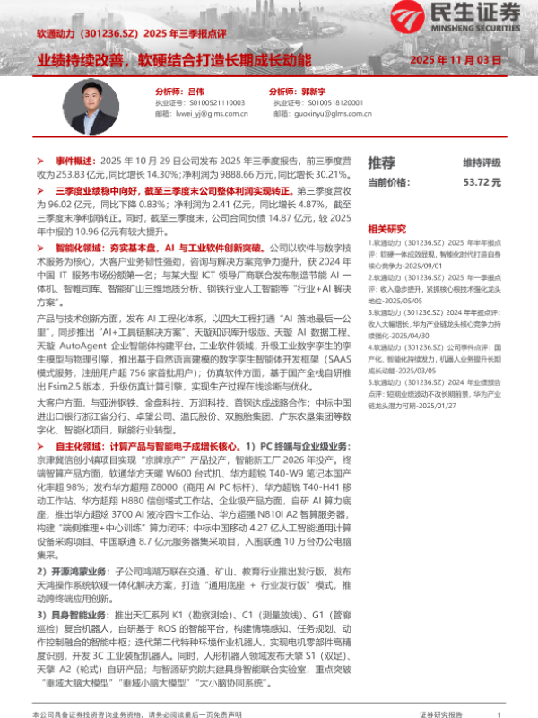 【民生证券】【202511】软通动力(301236.SZ)2025年三季报点评-4页