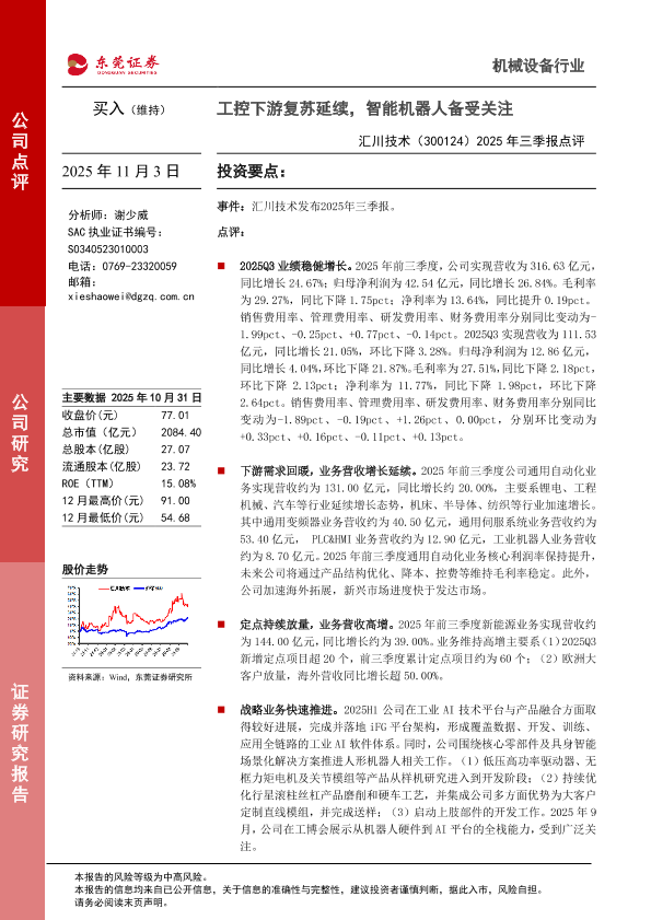 【东莞证券】【202511】2025年三季报点评:工控下游复苏延续,智能机器人备受关注-3页