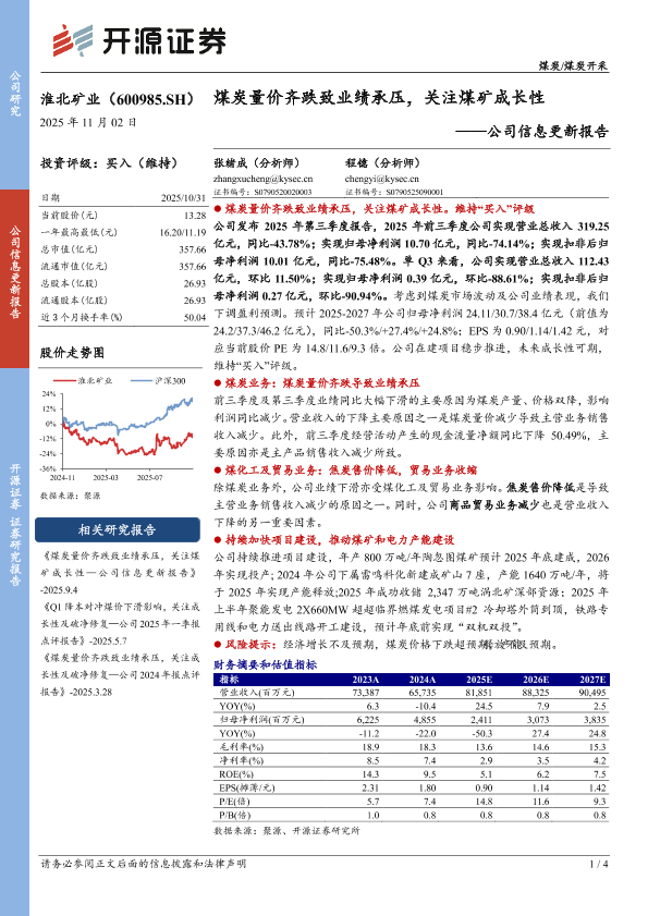 【开源证券】【202510】煤炭量价齐跌致业绩承压,关注煤矿成长性-4页