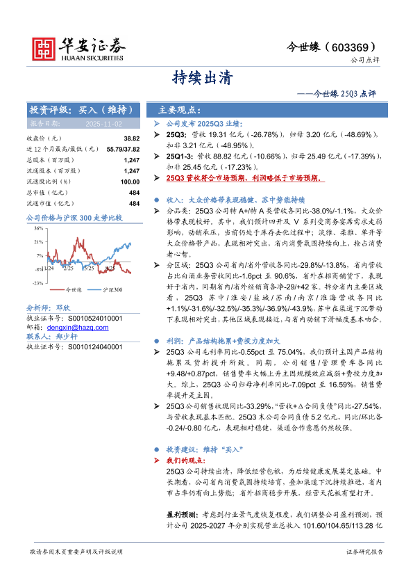 【华安证券】【202511】持续出清——今世缘 25Q3点评-4页