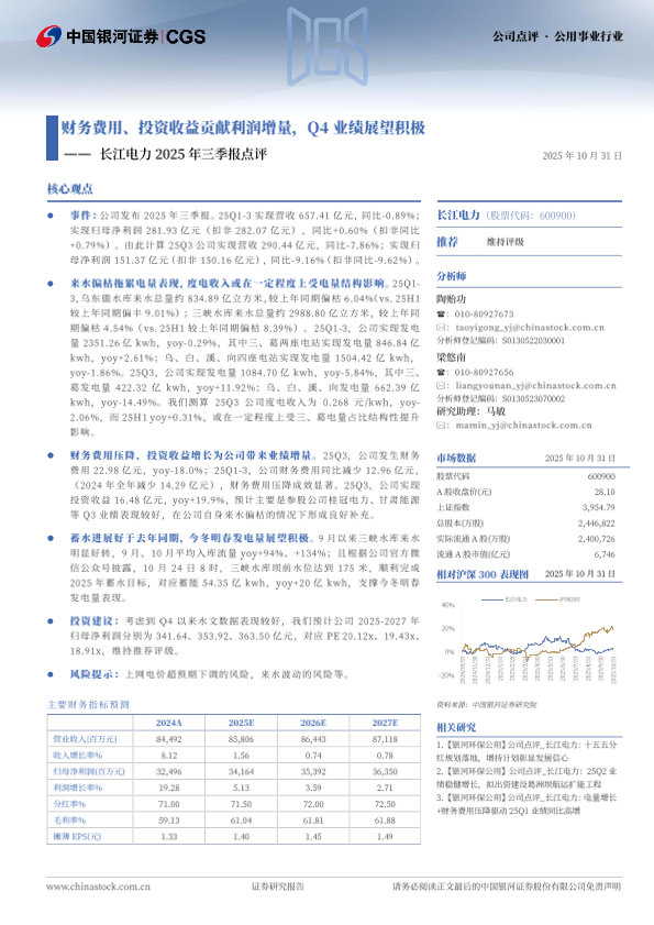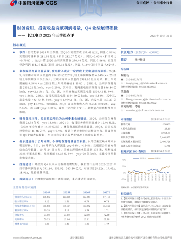 【长江证券】【202510】长江电力2025年三季报点评-4页