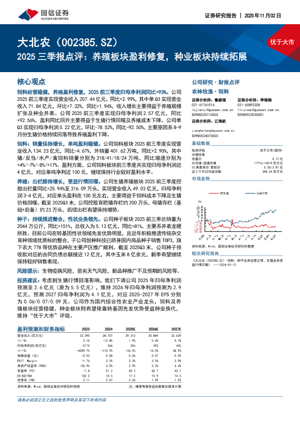 【国信证券】【202511】2025三季报点评:养殖板块盈利修复,种业板块持续拓展-8页