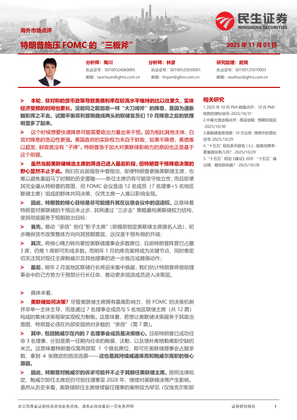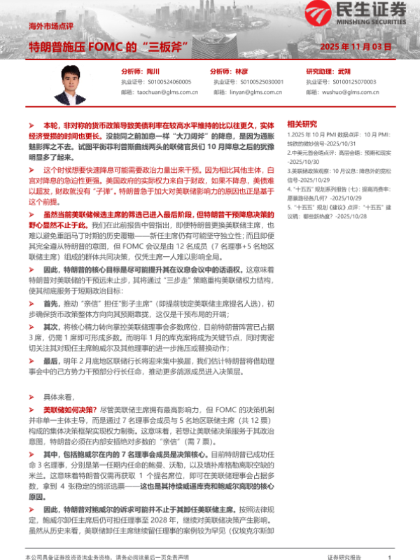 【民生证券】【202511】海外市场点评:特朗普施压FOMC的“三板斧”-6页