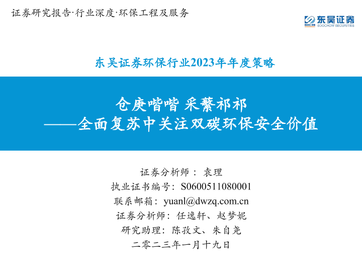 【东吴证券】【20230119】环保行业2023年年度策略:仓庚喈喈,采蘩祁祁,全面复苏中关注双碳环保安全价值-229页