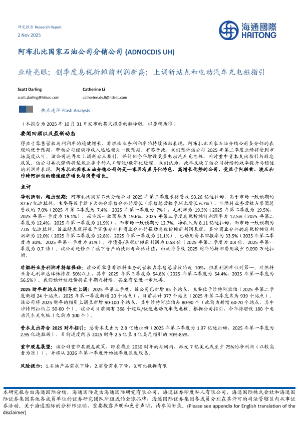 【海通国际】【202511】业绩亮眼;创季度息税折摊前利润新高;上调新站点和电动汽车充电桩指引-9页