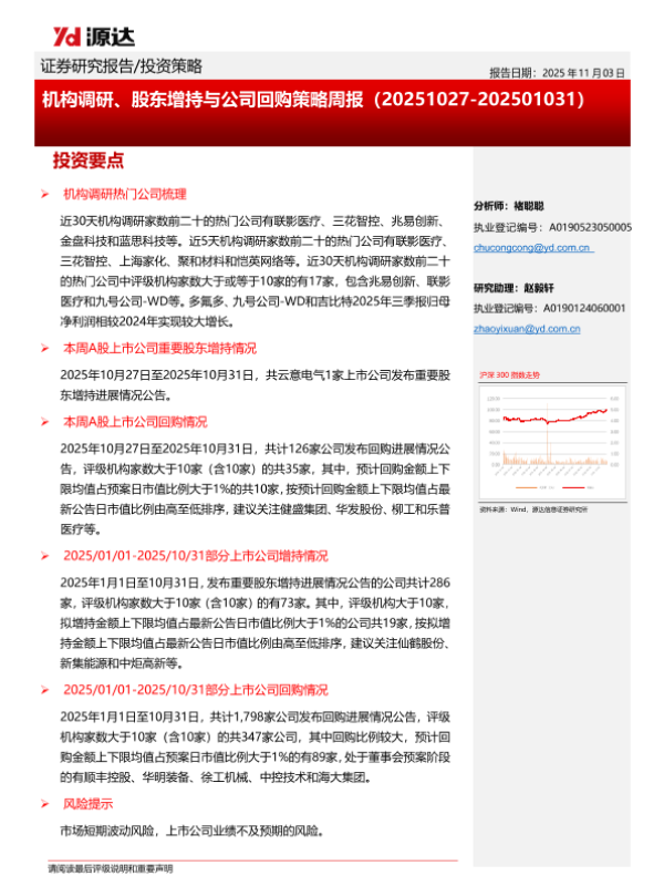 【源达信息】【202510】机构调研、股东增持与公司回购策略周报(20251027-202501031)-11页