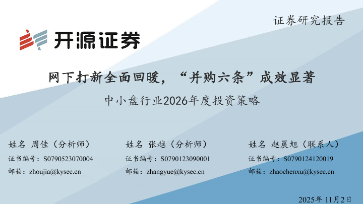 【开源证券】【202511】中小盘行业2026年度投资策略:网下打新全面回暖,“并购六条”成效显著-33页