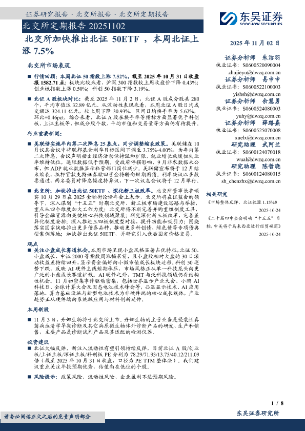 【东吴证券】【202511】北交所加快推出北证 50ETF ,本周北证 上涨 7.5%-8页