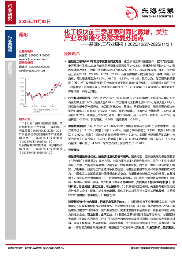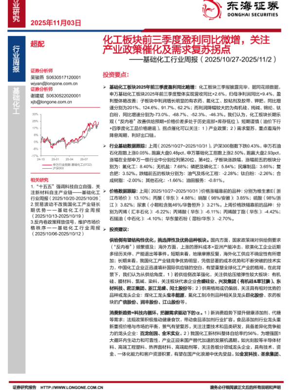 【东海证券】【202510】化工板块前三季度盈利同比微增,关注产业政策催化及需求复苏拐点-20页