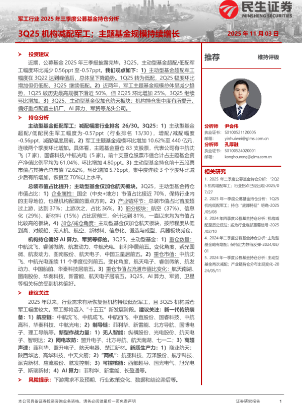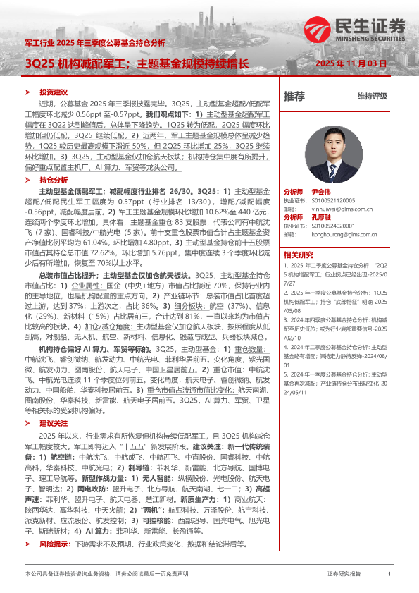 【民生证券】【202511】军工行业 2025年三季度公募基金持仓分析-17页