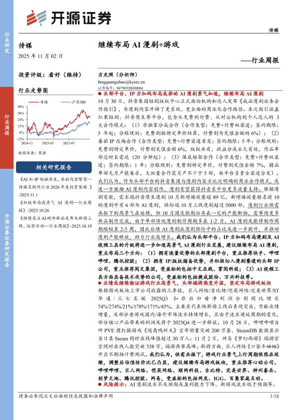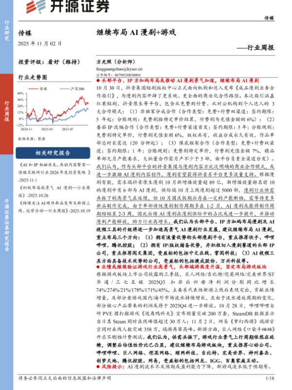 【开源证券】【2025】继续布局 AI漫剧+游戏——行业周报-18页