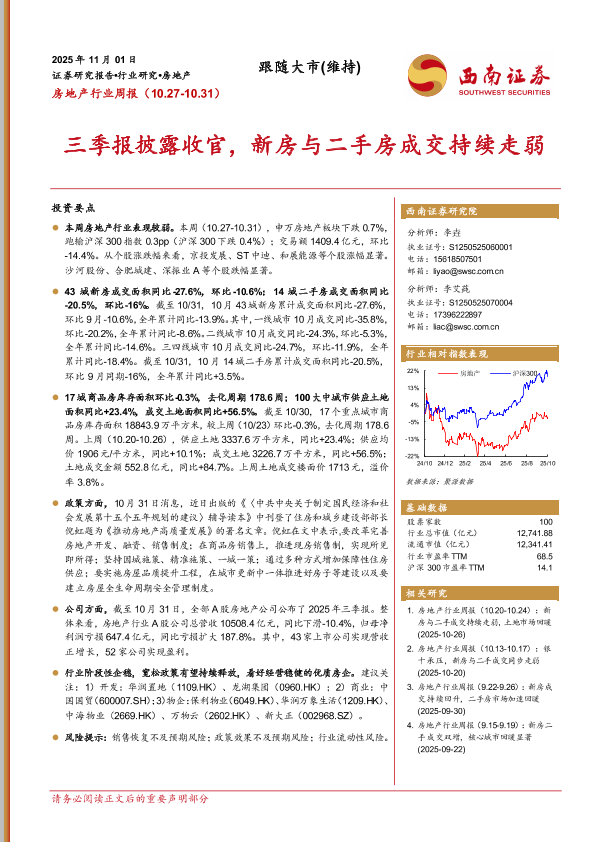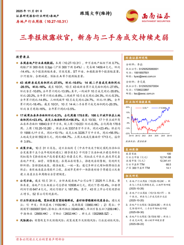 【西南证券】【202510】房地产行业周报(10.27-10.31)-14页