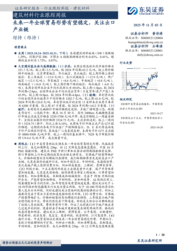 【东吴证券】【202511】建筑材料行业跟踪周报-20页