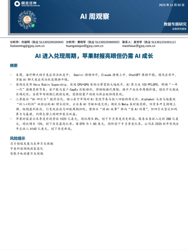 【国金证券】【202310】AI周观察:AI进入兑现周期,苹果财报亮眼但仍需AI成长-9页