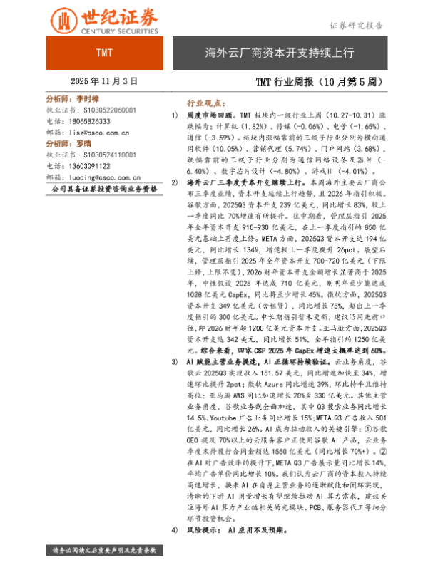 【世纪证券】【202511】海外云厂商资本开支持续上行-16页