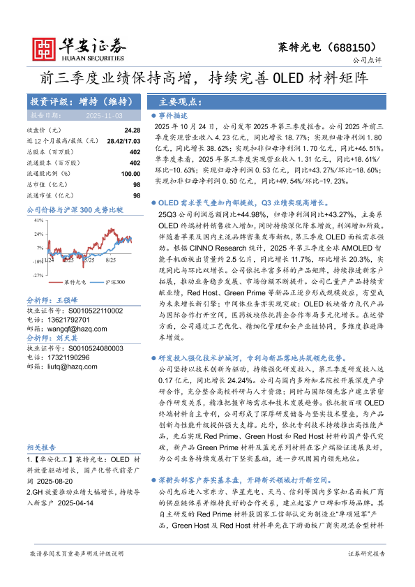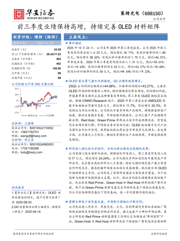 【华安证券】【2025】前三季度业绩保持高增,持续完善OLED材料矩阵-4页