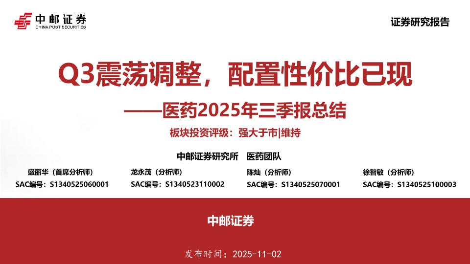 【中邮证券】【202511】Q3震荡调整,配置性价比已现——医药2025年三季报总结-58页