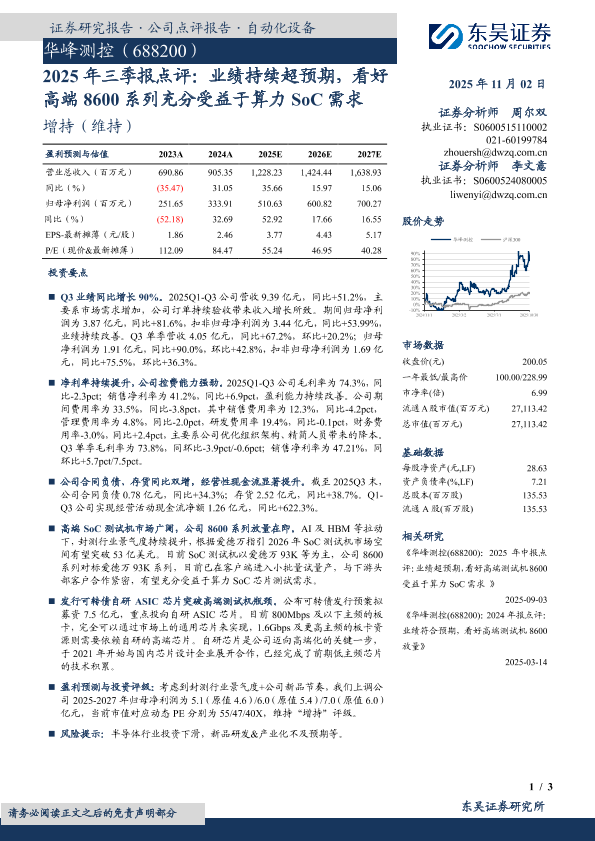 【东吴证券】【202511】2025年三季报点评:业绩持续超预期,看好高端8600系列充分受益于算力SoC需求-3页