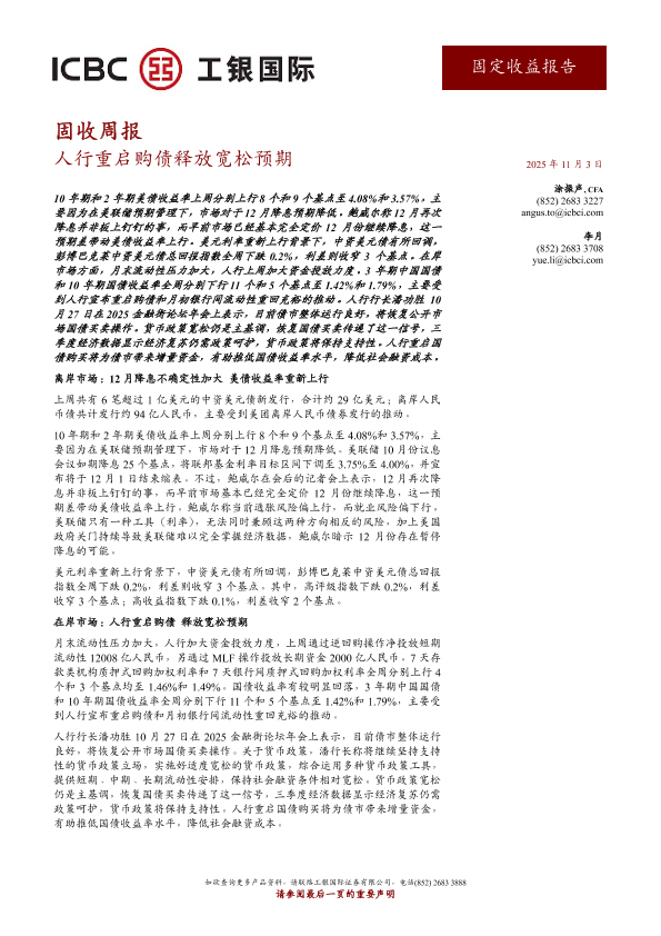 【工银国际证券有限公司】【202511】固定收益周报 - 2025 年 11 月 3 日-13页