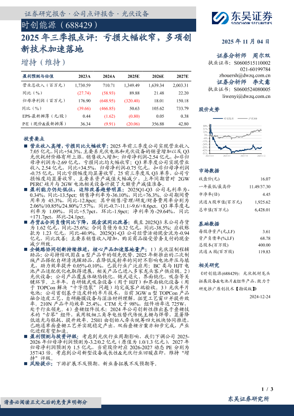 【东吴证券】【202511】2025年三季报点评:亏损大幅收窄,多项新技术加速落地-3页