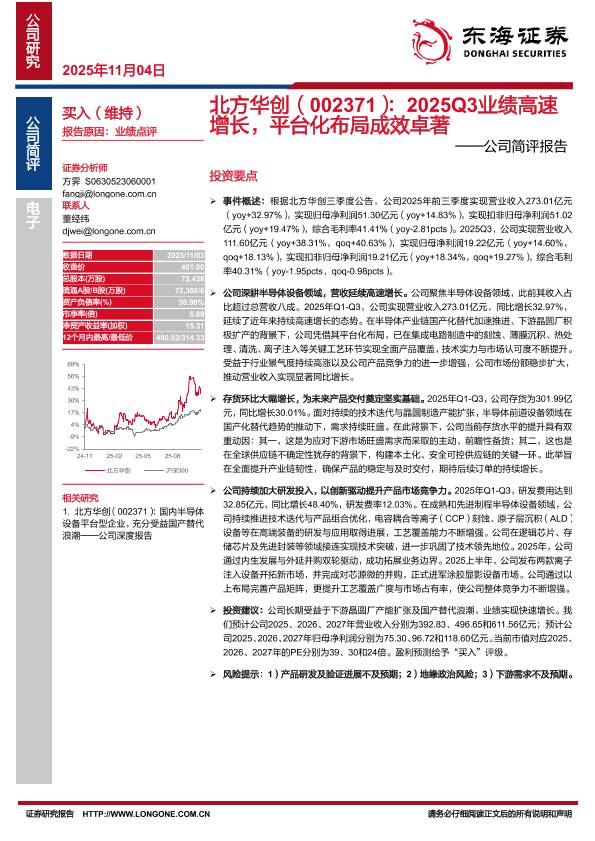 【东海证券】【202511】北方华创(002371):2025Q3业绩高速 增长,平台化布局成效卓著-4页