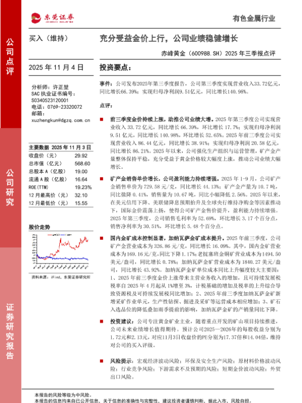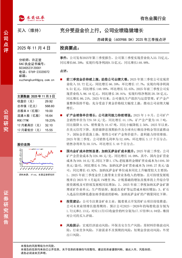 【东莞证券】【202511】2025年三季报点评:充分受益金价上行,公司业绩稳健增长-3页